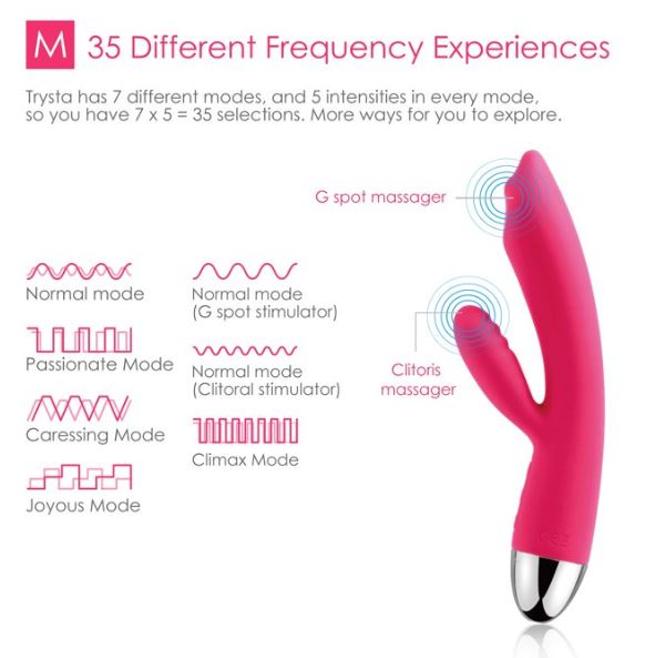 Dive into a realm of unparalleled pleasure with an erotic wonder designed to awaken every sense and ignite the flames of desire with the rechargeable Trysta Vibrator with Rolling G spot
